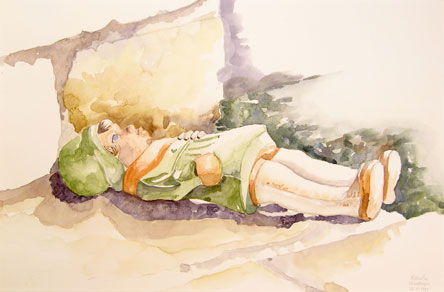This is a tiny watercolour, painted on a rather cold spring day in 2003. It was a challenge to quickly catch the spec...