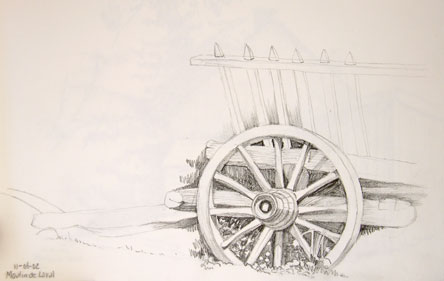 1920's wagon sketched at location at Openair museum Het Hoogeland