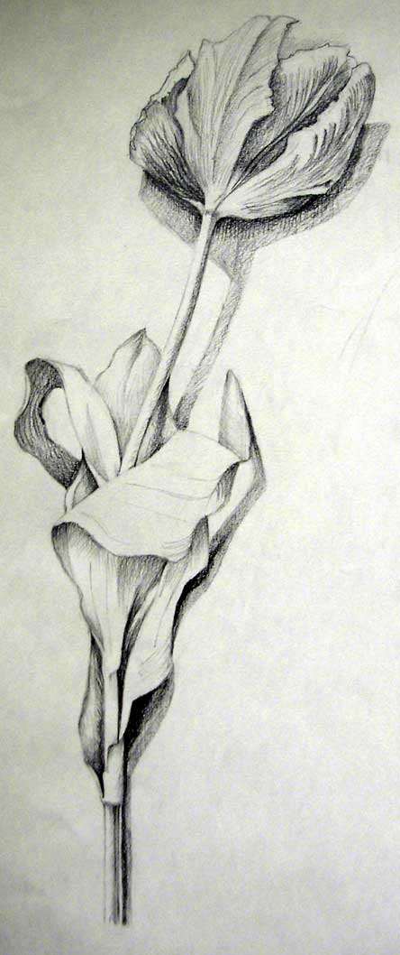 Drawn in painting class from a real tulip on my desk.