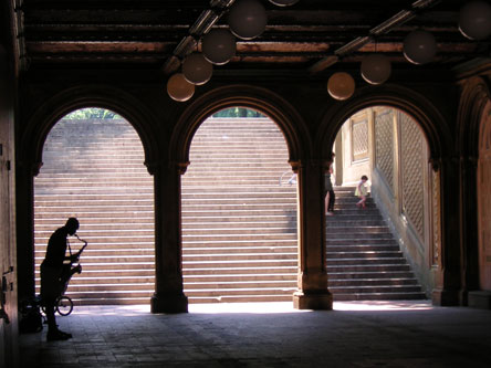I was walking in Central Park (June 2003) when I saw this saxophone player. With the stunning back light it seems lik...