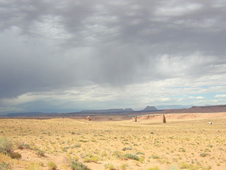 September 2004. We were driving out of the area around Capitol Reef (USA) and towards Moab, leaving the ugly weather ...